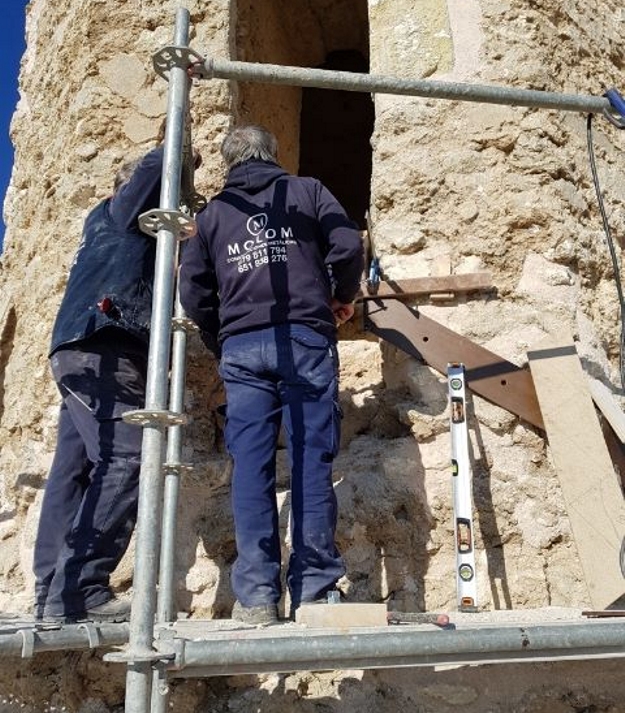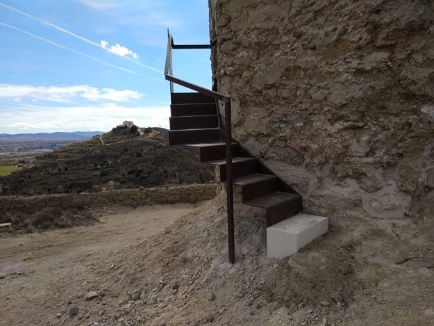Estructura metálica/ escalera para acceso al restaurado torreón de la torre mocha, uno de los cinco castillos del conjunto fortificado de Calatayud. Fabricación en taller, suministro y montaje en obra escalera de chapa acero corten con todos sus accesorios según planos. Todos los accesorios son de acero corten documentados y certificados. El desarrollo de la escalera volada fue plegado de una sola vez, sin cortes ni soldaduras.