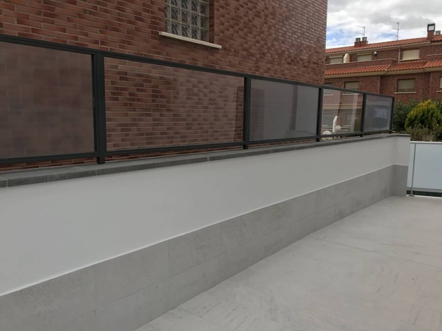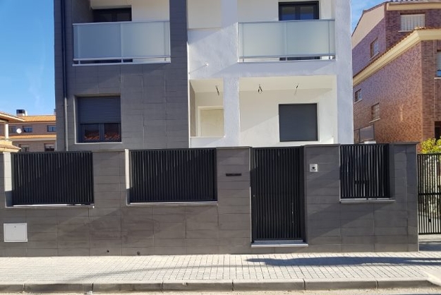 Proyecto de vivienda unifamiliar. Cerrajería exterior e interior completa.  Fabricación en taller, suministro y montaje. Barandillas metálicas exteriores, barandillas interiores, barandillas de acero inoxidable, rejas sótano, puerta seccional garaje, rejas de lamas, puerta peatonal, puerta principal parking, cerramiento separador de terraza con metraquilato. Acabados íntegros en esmalte sintético Ral 7016