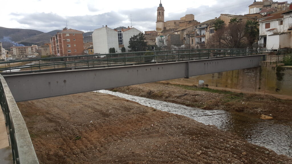Fabricación y colocación de estructura metálica pesada sobre el rio Jalón en Ateca y sus correspondientes barandillas, realizamos todo tipo de pasarelas y accesos, también realizados pasarelas elevadas en empresas, altillos y estructuras metálica .