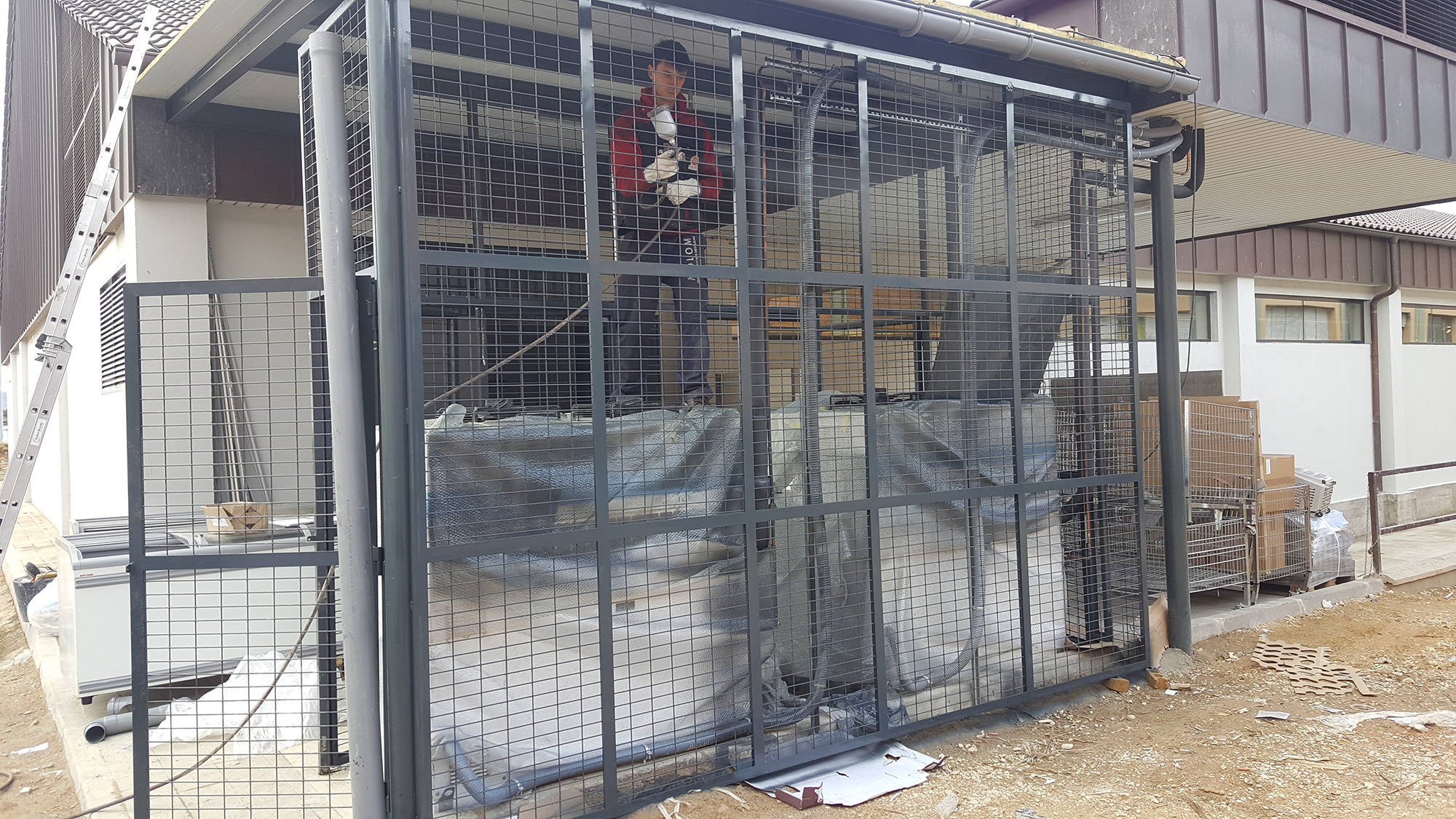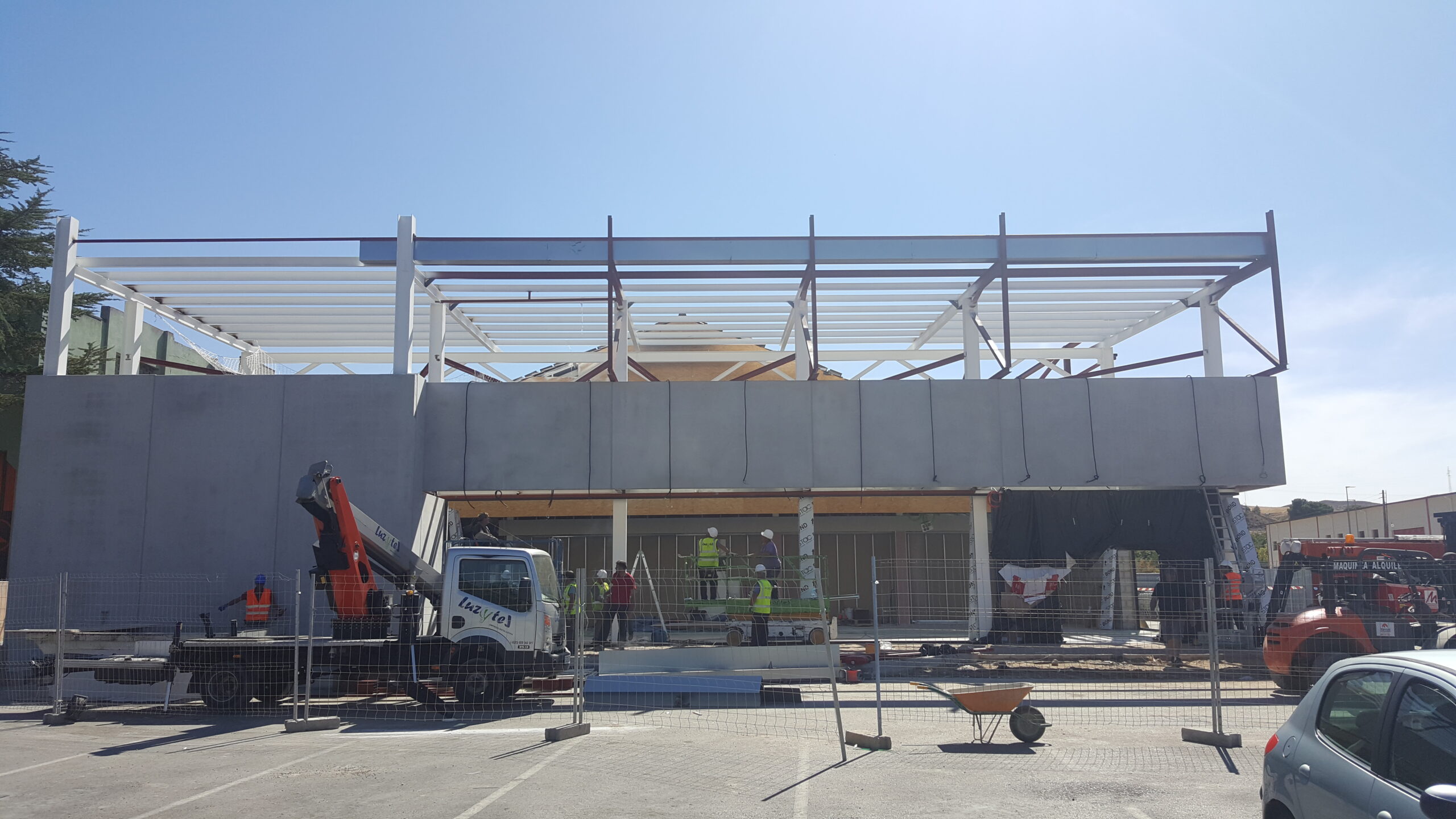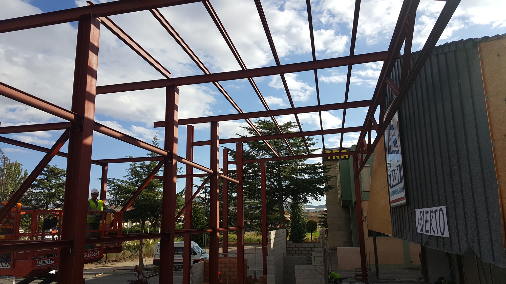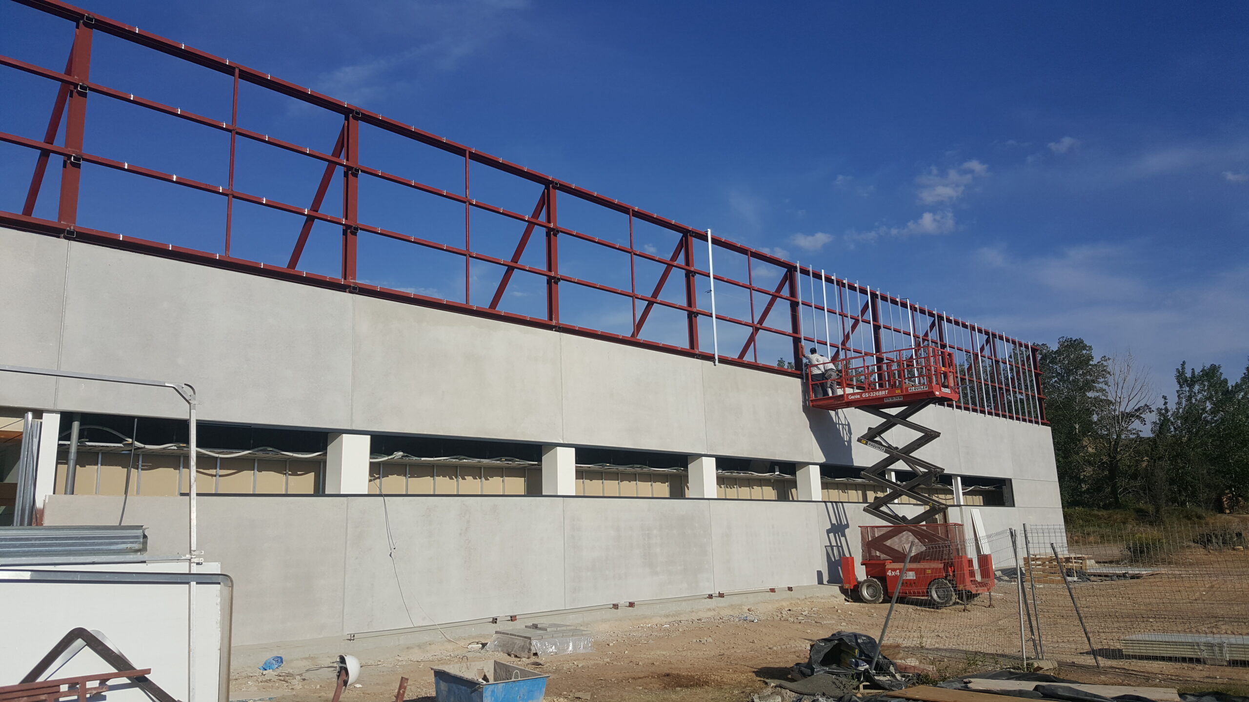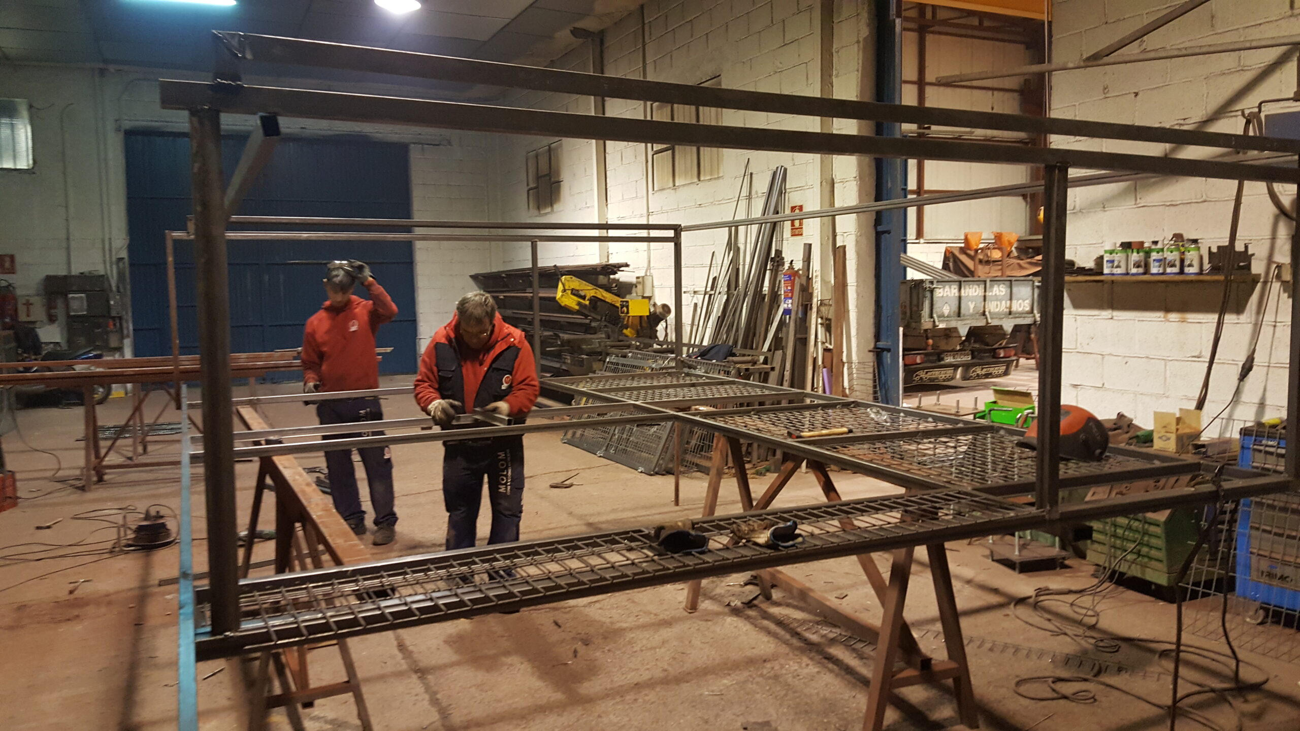Soldar conectores de micropilotes y placas de anclaje, ejecución y montaje de capiteles,ampliación de pilares, montaje cuelgues para prefabricado de hormigón. Montaje de estructura metálica, ejecución de soportes luminarias farolas, ejecución de remates de chapa galvanizada en pilares y cubierta. Suministros de materiales, ampliación de muelle, altillo técnico, habitáculo del horno, puerta de cocina, remates de vertedero, puertas, puertas de almacén, panel de fachada, techos rf, suministro de materiales para verja de cierre equipos de frio industrial, puertas incluidas.