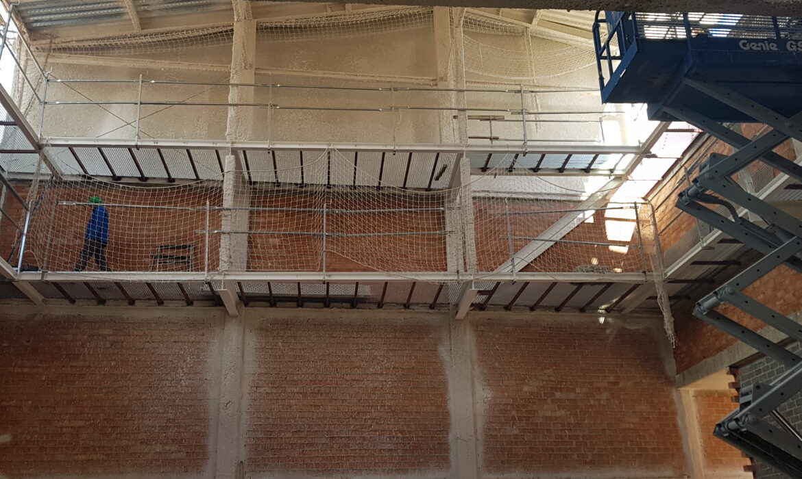 Fabricación en taller, suministro y montaje de pasarela tramex en 3 fase del auditorio de llueca (Zaragoza). Fabricación, suministro y montaje de escalera metálica con...